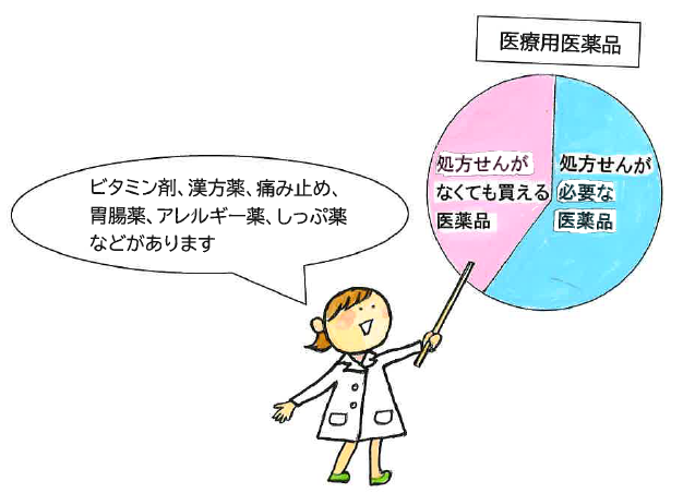 通常、医師の処方せんが必要な医療用医薬品ですが、「非処方せん医薬品」については、処方せんなしでの販売が認められています。